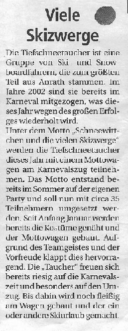 Zeitungsartikel über die Tiefschneetaucher